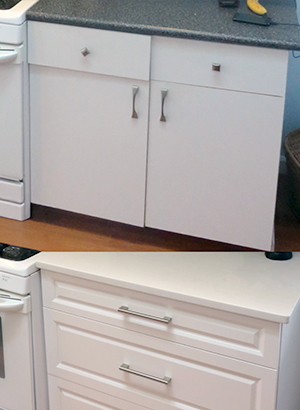 We can add new cabinets and convert base cabinets to include soft-close drawers. We also provide matching panels, crown molding, light valances, and other accessories.